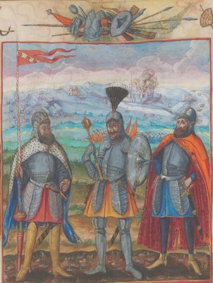 Мал. 1. Фрагмент мініатюри з зображенням трьох гусар, 1616 р. (© Biblioteka Jagiellońska).