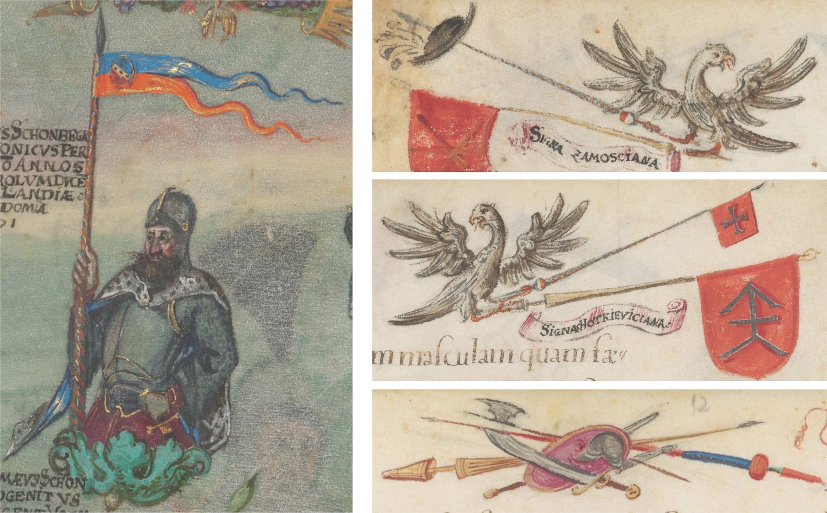 Мал. 2. Фрагменти мініатюр з деталями розпису гусарських списів, 1616 р. (© Biblioteka Jagiellońska).