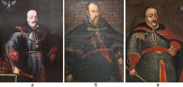Wilanowie); (б) – портрет Андрія Воловича, XVII ст. (© Nacionalinis M. K. Čiurlionio dailės muziejus); (в) – портрет