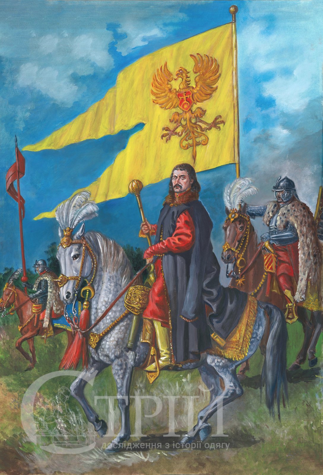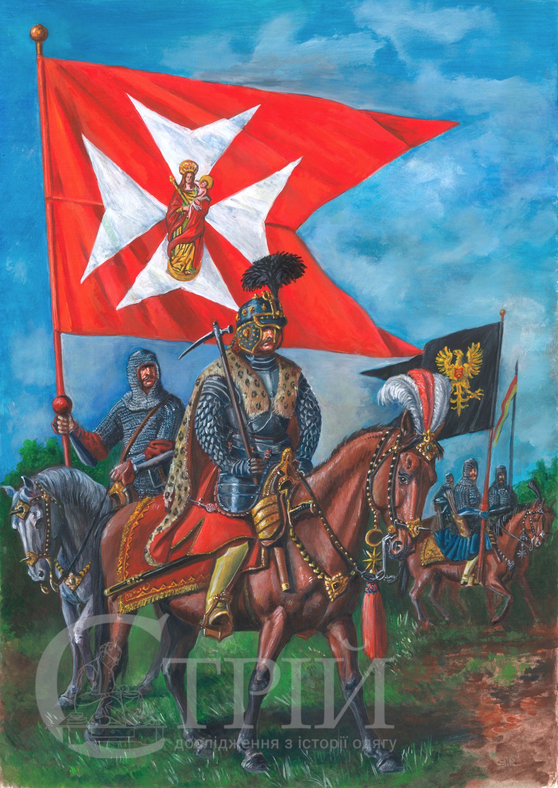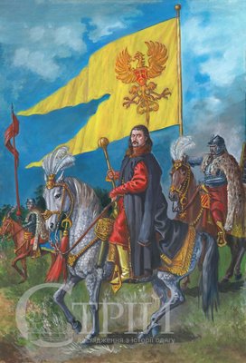 Мал. 4. Художня реконструкція воєводи руського, князя Яреми Вишневецького у супроводі гусарів особистої