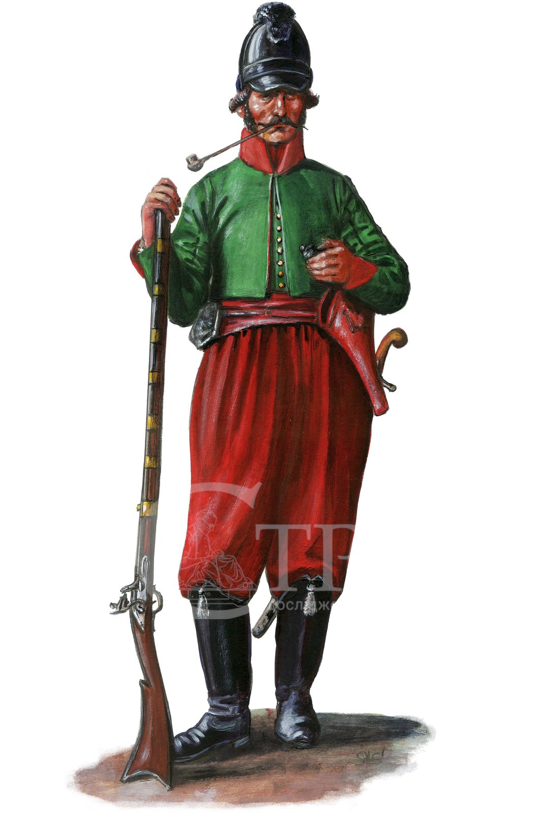 Рис. 3. Художня реконструкція рядового Одеського грецького піхотного батальйону 1804–1819 рр. (© С. Шаменков).